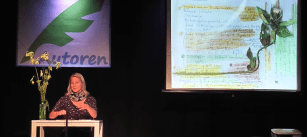 Wenige Tage nach der Schreibwerkstatt präsentierten die Autorinnen und Autoren nicht nur ihre Texte auf der Bühne des NUTS – Die Kulturfabrik, sondern gaben dem Publikum auch Einblick in den Schaffensprozess. Wie ist der Text entstanden? Welche Herausforderungen gab es zu meistern? Woher kam die Idee für den Text? Bernhard Strasser las aus „Die Schwingen des Feuers“, Armena Kühne trug ihre Erzählung „Rabe und Schaf“ vor, während Martin Trautwein mit einem Auszug aus seinem historischen Roman „Der schweigende Fels“ begeisterte. Nach der Pause las Meike K.-Fehrmann das Gedicht „Die Kohldistel“ vor. Die Autorin, die ansonsten für ihre Krimis bekannt ist, präsentierte erstmals ein Gedicht, das aus einer Schreibübung direkt auf der Alm entstanden war. Michael Inneberger bot danach einen Auszug aus seinem aktuellen Romanprojekt über die Kindheit des Christopher Kolumbus dar. Zu guter Letzt sorgte Reinhard Hauswirth mit seinen zwei Gedichten in Mundart für viel Vergnügen beim Publikum. Für einen besonderen Augengenuss sorgten die Kollagen von Monika Klinkenberg-Weigel, die per Beamer während der Lesungen gezeigt wurden.