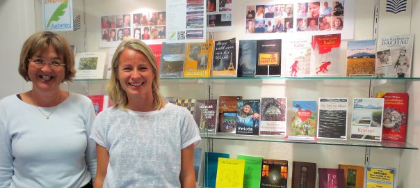 Foto: Anette Hagenau, Leiterin der Stadtbücherei Traunstein und Meike K.-Fehrmann, Vorsitzende des Vereins „Chiemgau-Autoren e.V.“ im Foyer der Bücherei